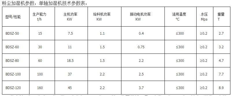 BDSZ型單軸粉塵加濕機主要用于各類灰庫干灰進行噴水加濕攪拌及輸送粉狀,以達到環保外運的要求。廣泛應用于化工、礦山、電廠、鋼廠等含固體顆粒物料的加濕、攪拌和輸送。粉塵加濕攪拌機是將粉狀物料進行噴水攪拌,混合的高效設備。主要是用在火力發電廠的除塵器先,也可供化工、冶金、礦山、建材等行業使用。通過控制加水量,已達到合適的適度要求。